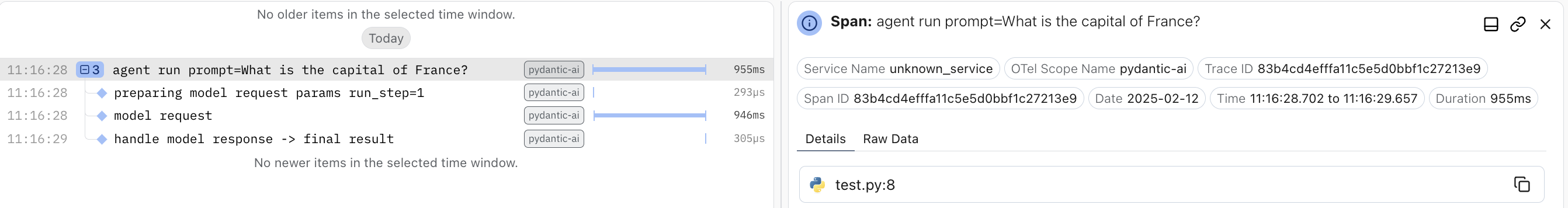PydanticAI has built-in (but optional) support for Logfire. That means if the logfire package is installed and configured and agent instrumentation is enabled then detailed information about agent runs is sent to Logfire. Otherwise there's virtually no overhead and nothing is sent.